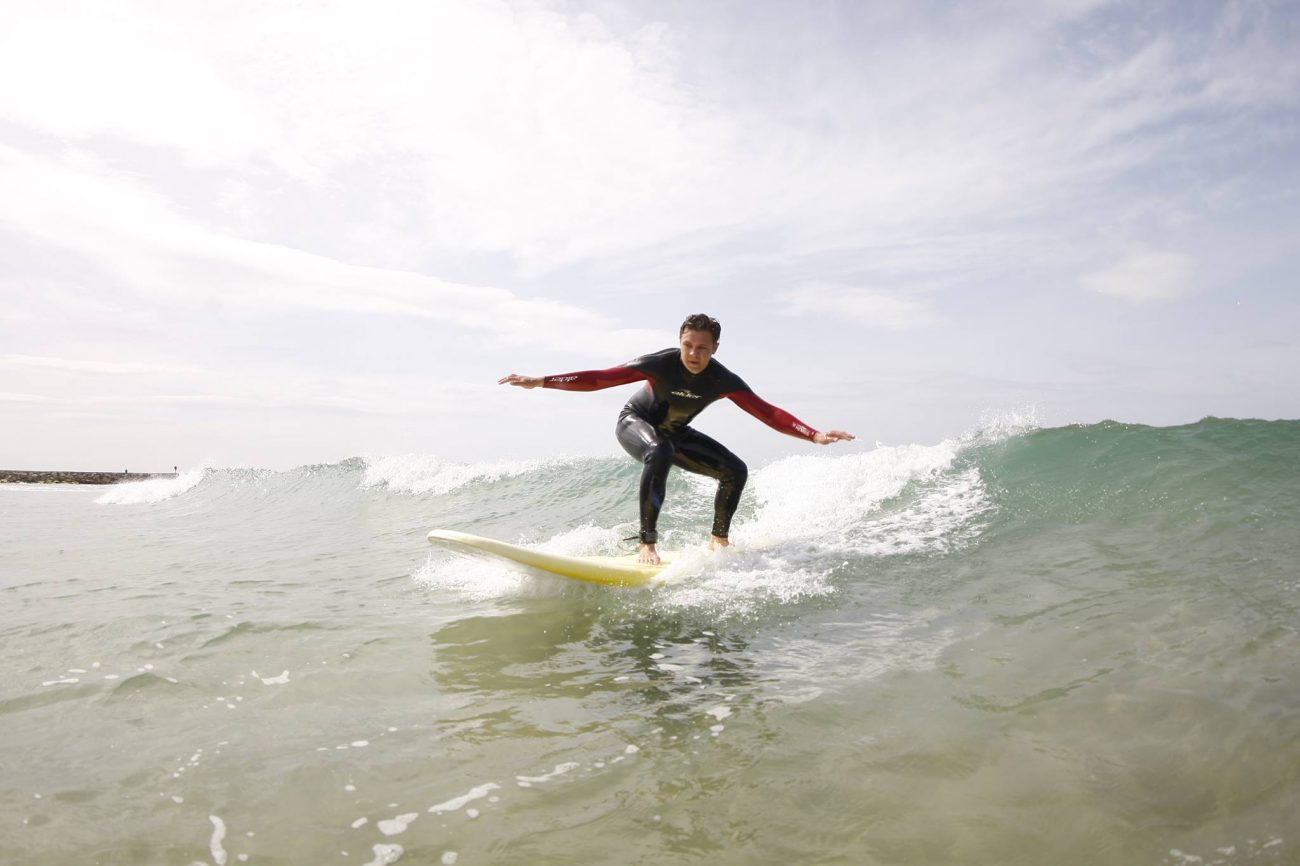 This level is all about learning the basics of surfing to be able to catch white water waves in safety. We’ll teach you all about surf equipment, safety rules, how to read and analyze sea conditions and basic techniques such as paddling and also standing up on the board. The goal is for you to surf small white water waves by yourself and having lots of fun.